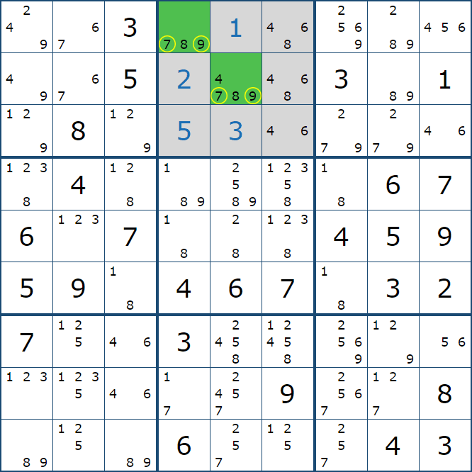 위의 말을 다시 말하자면 숨겨진 페어에 둘러 쌓은 숫자를 제거 하면 확실한 페어가 된다.
