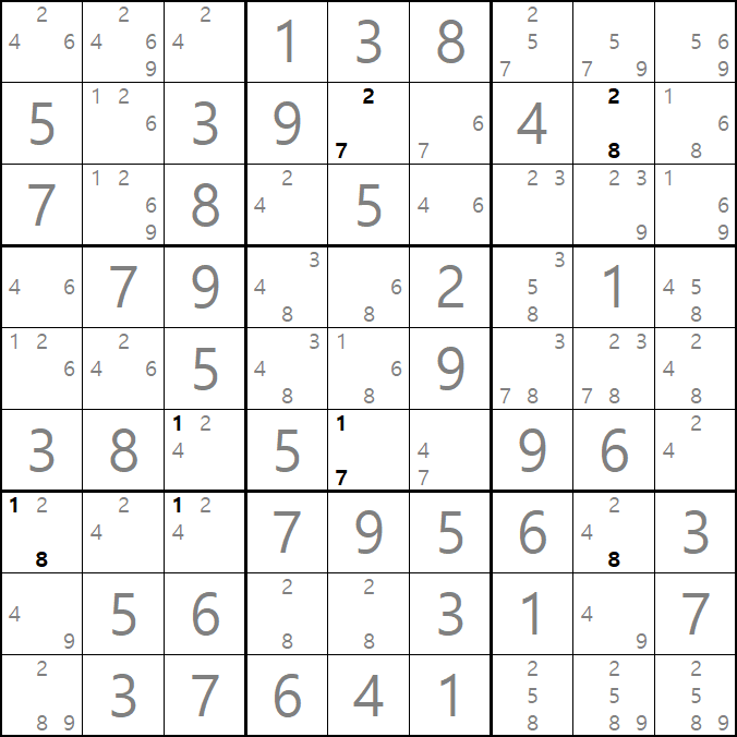 나도 사족을 계속 다는 것은 매우 귀찮다. 그래도 올리는 것은 그 만큼 스트롱 링크 개념이 주요하기 때문이고, 나와 같이 스도쿠를 좋아하는 스도커들의 실력이 한 단계 더 올라가기를 바라기 때문이다~