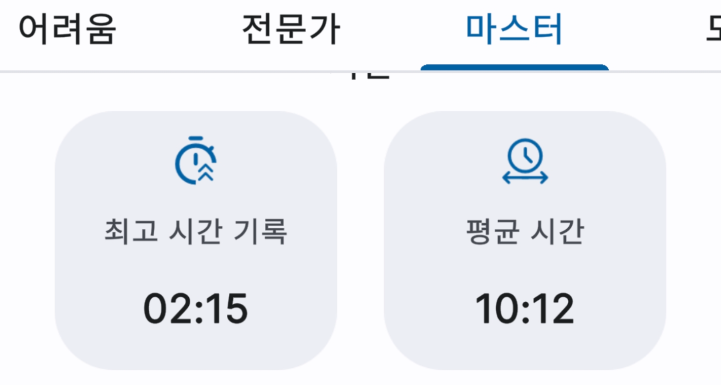 약 2달간 즐기던 스도쿠 게임은 제일 높은 단계인 마스터를 보통 10분 내외로 풀었는데...