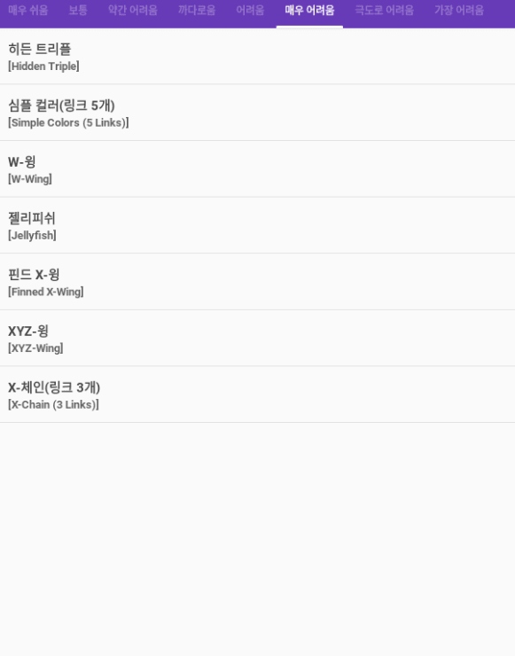 9가지의 단계 중에서 5~6단계가 내가 원래 즐겨하던 스도쿠의 마스터 레벨과 비슷하고