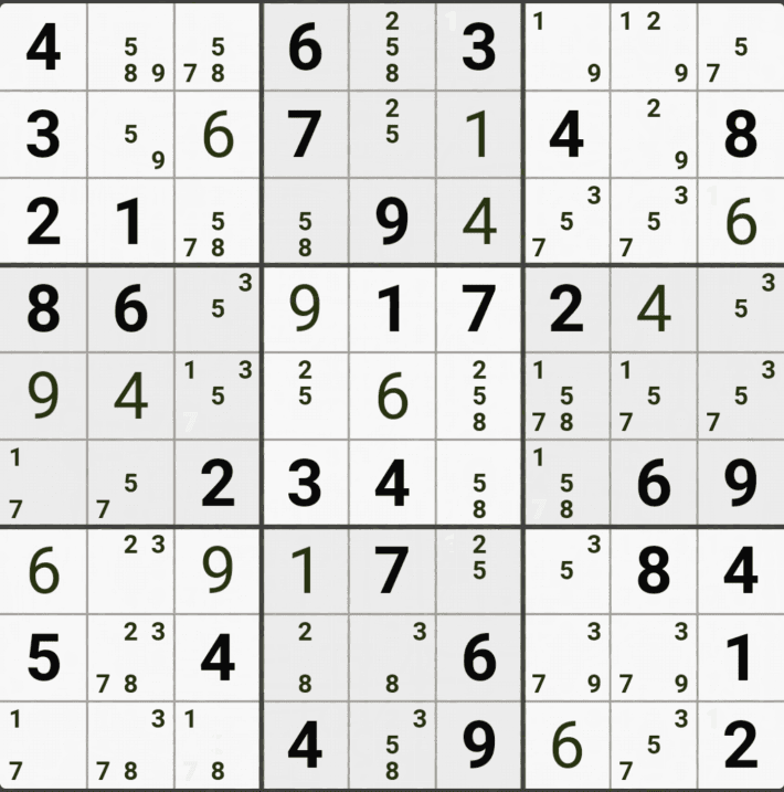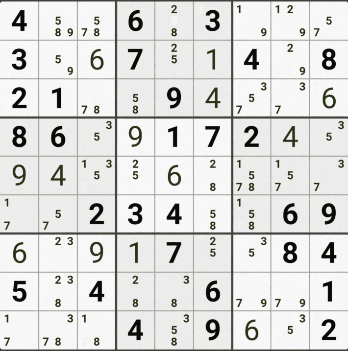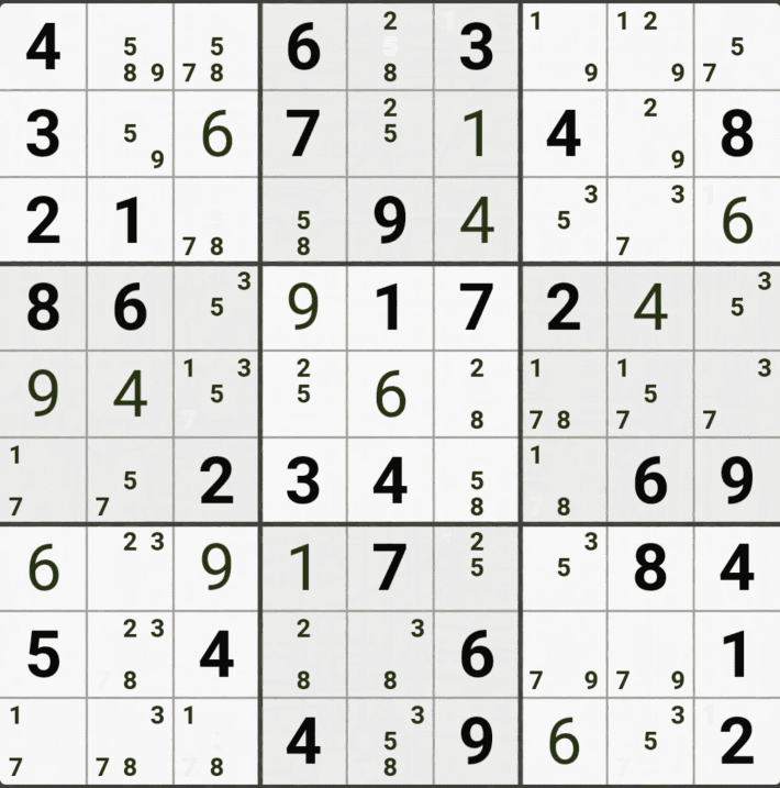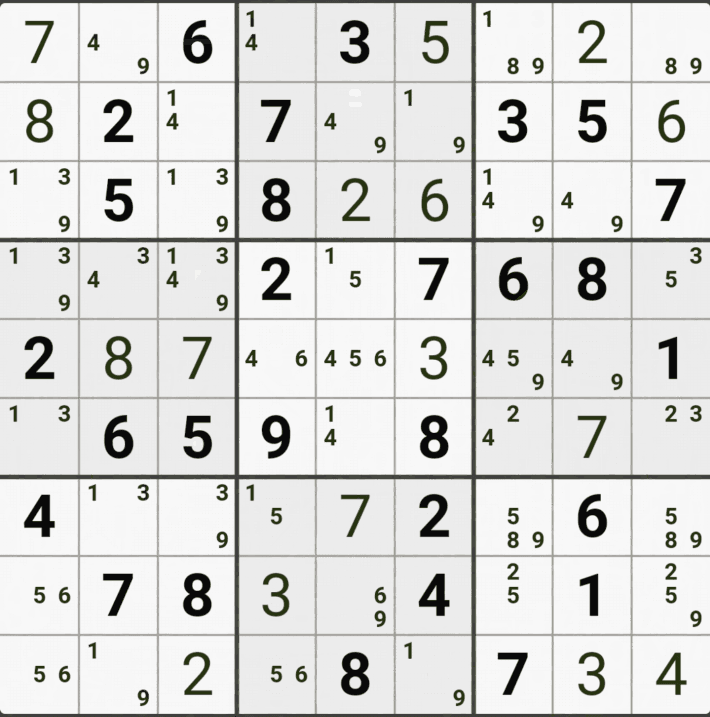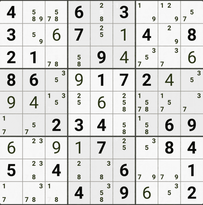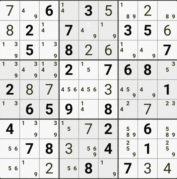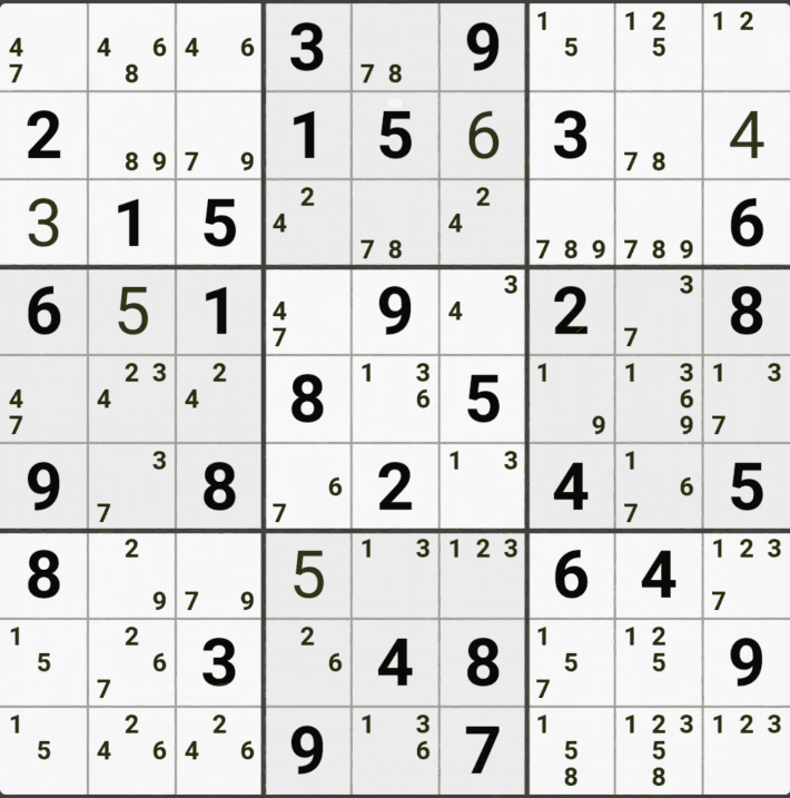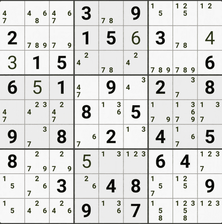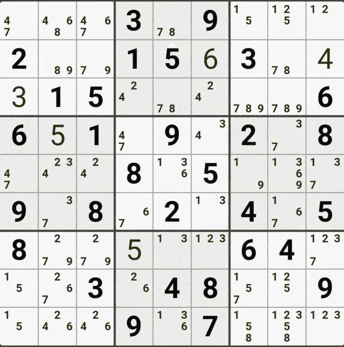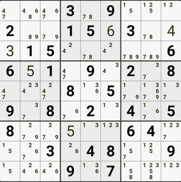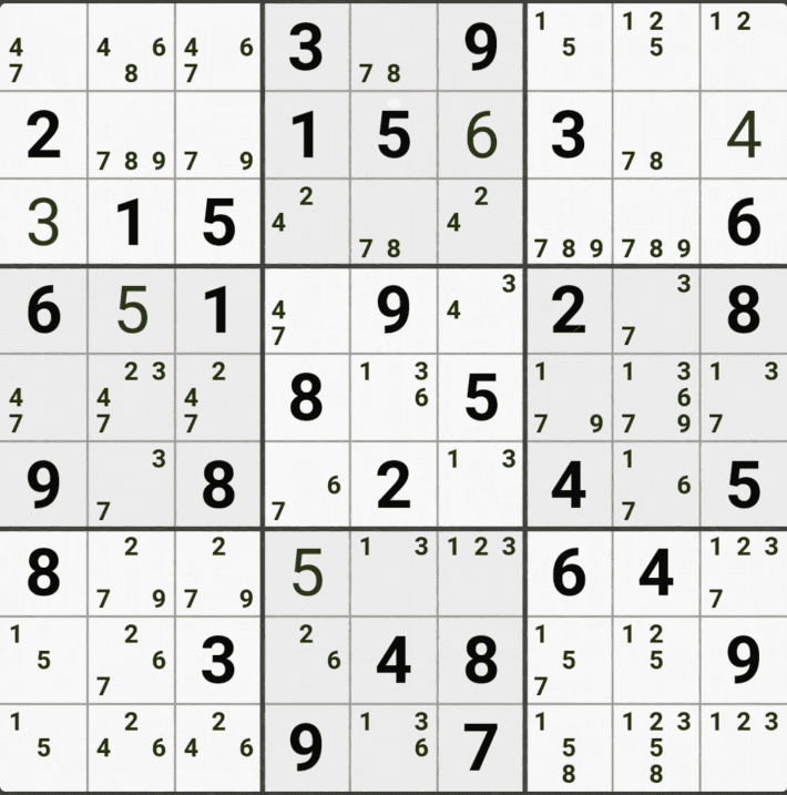 웹사이트 또는 유튜브에서 익힌 고급기술을 실전에서 쓰려면 실제로 잘 나오지 않거나 보이지 않아서 놓치는 경우가 많다. 그래서 이번 글에서는 스도쿠에서 가장 많이 출현하는 싱글체인(Single Cahin, 심플컬러링), X체인(X-Chain), XY체인(XY-Chain), 교대추론체인(Alternating Inference Chains) 의 실전 움짤(225개)을 모아봤다. 자료 출처는 안도쿠 3이라는 안드로이드 앱에서 클래식 스도쿠 '극히 어려움 101번~150번'까지이다.