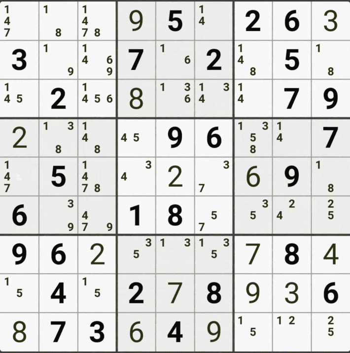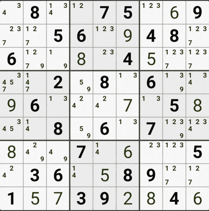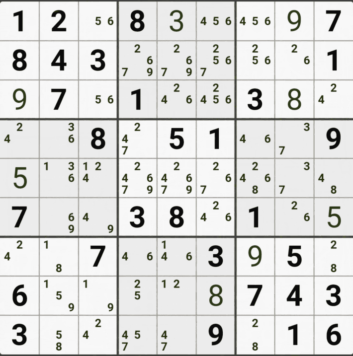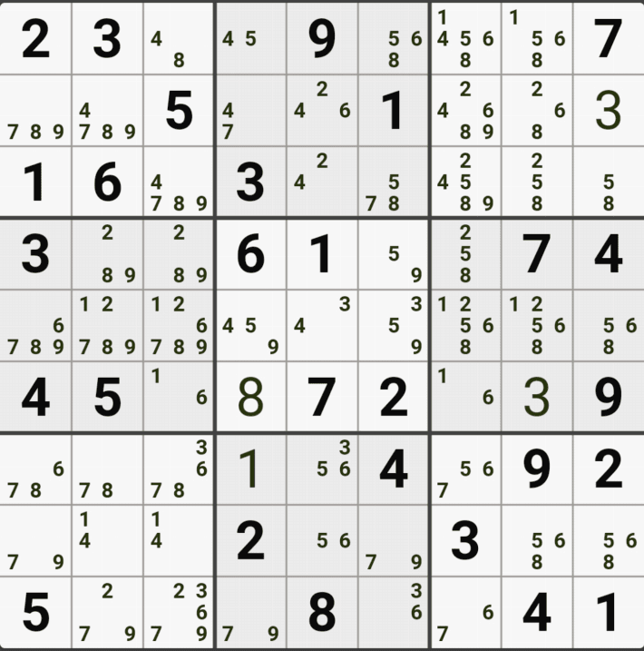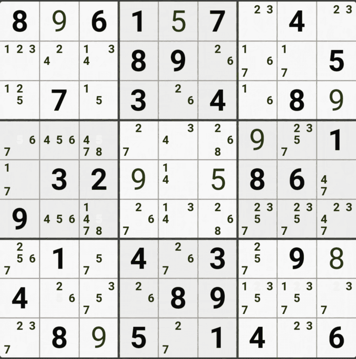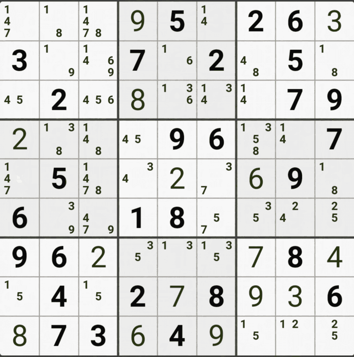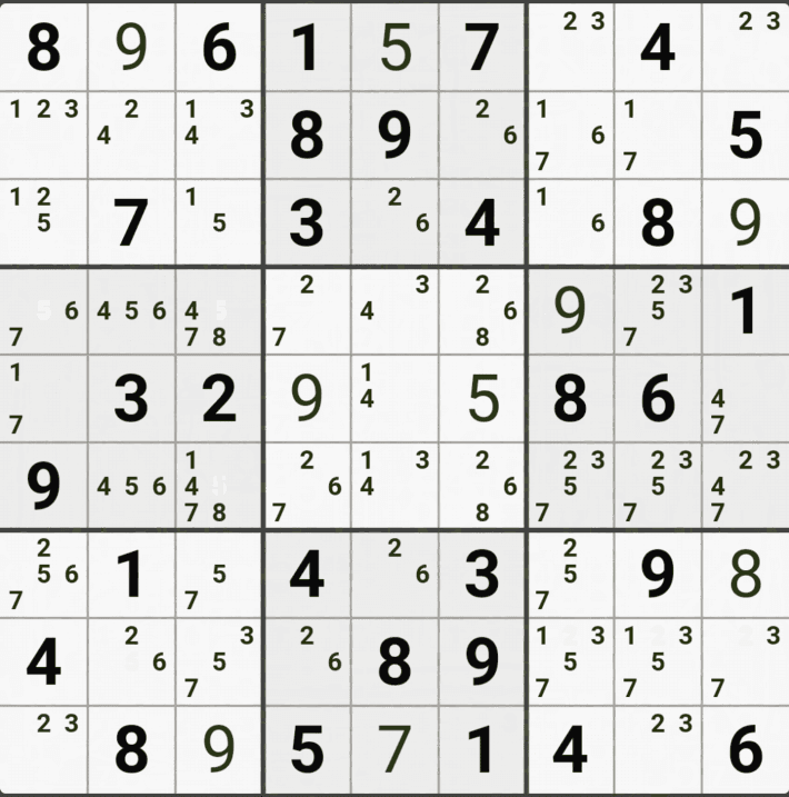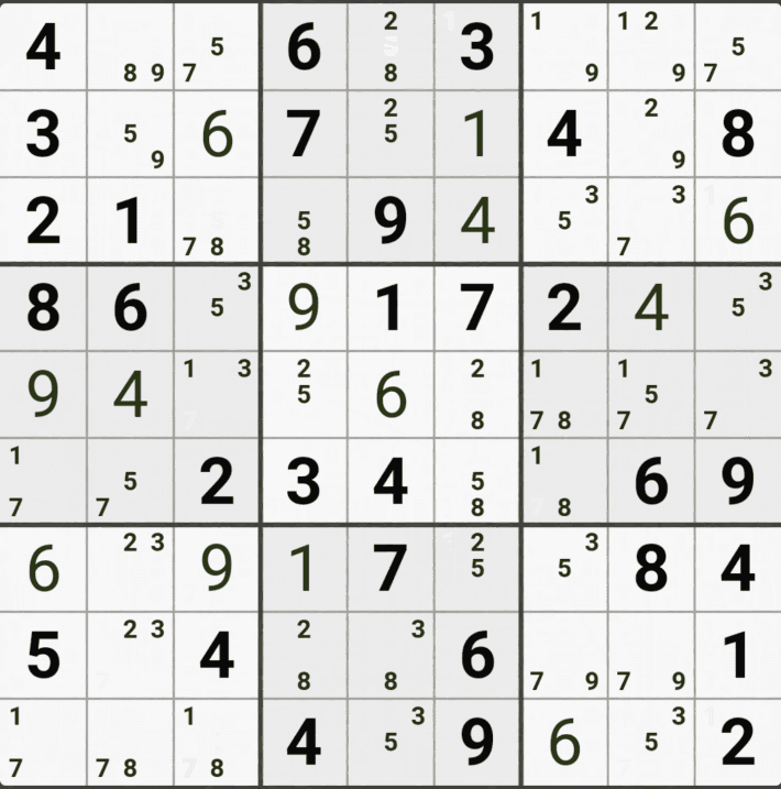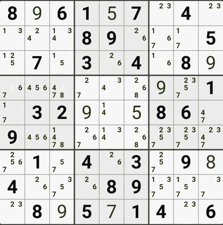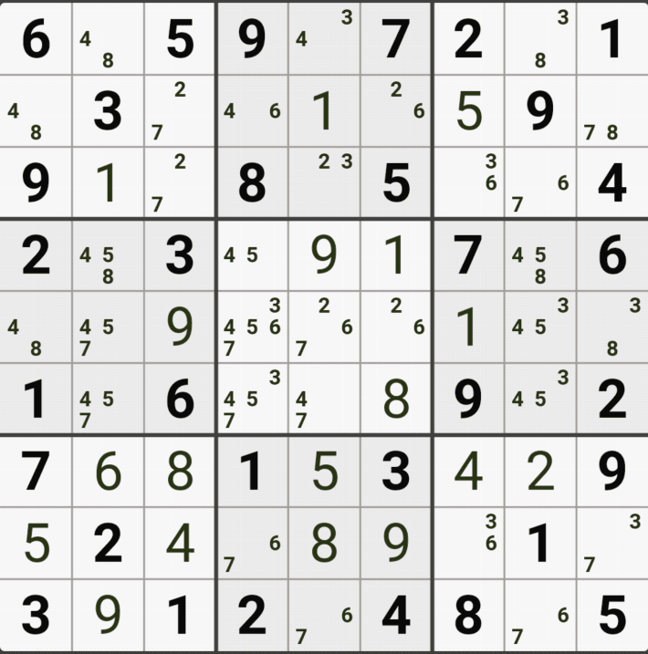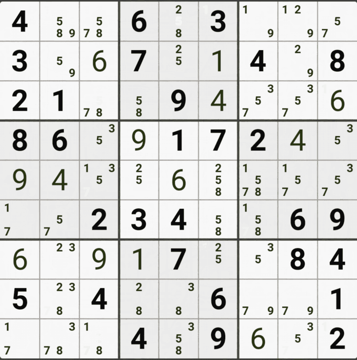 웹사이트 또는 유튜브에서 익힌 고급기술을 실전에서 쓰려면 실제로 잘 나오지 않거나 보이지 않아서 놓치는 경우가 많다. 그래서 이번 글에서는 스도쿠에서 가장 많이 출현하는 싱글체인(Single Cahin, 심플컬러링), X체인(X-Chain), XY체인(XY-Chain), 교대추론체인(Alternating Inference Chains) 의 실전 움짤(225개)을 모아봤다. 자료 출처는 안도쿠 3이라는 안드로이드 앱에서 클래식 스도쿠 '극히 어려움 101번~150번'까지이다.