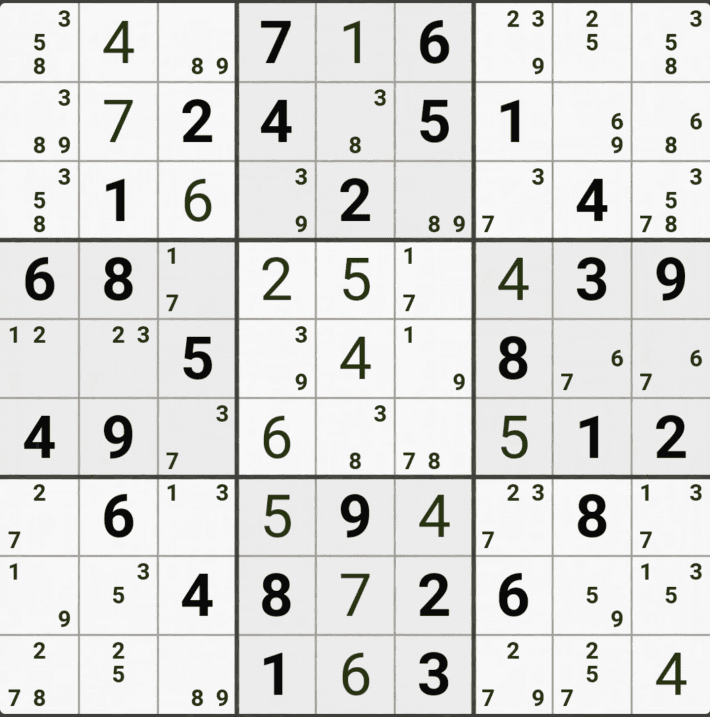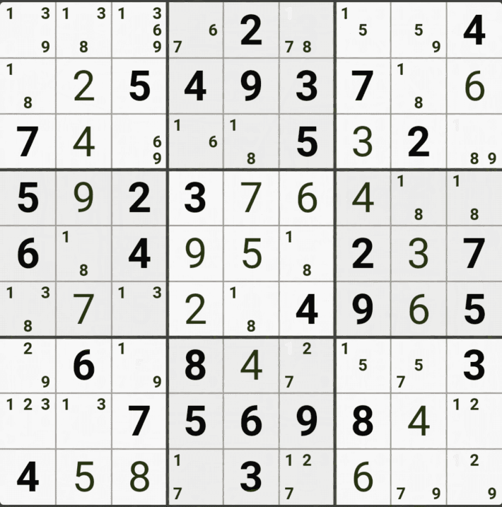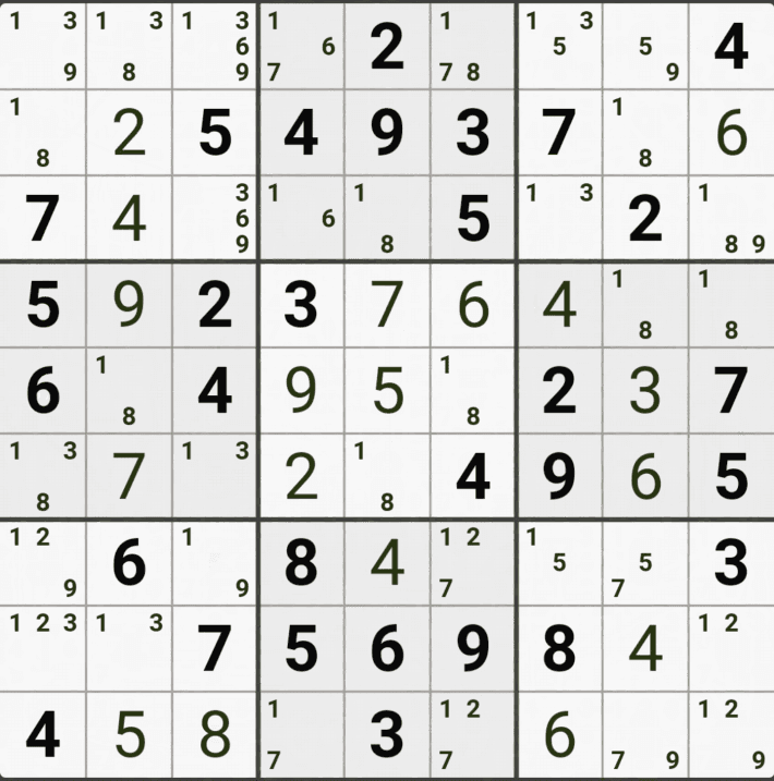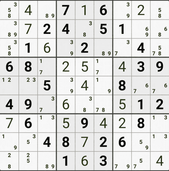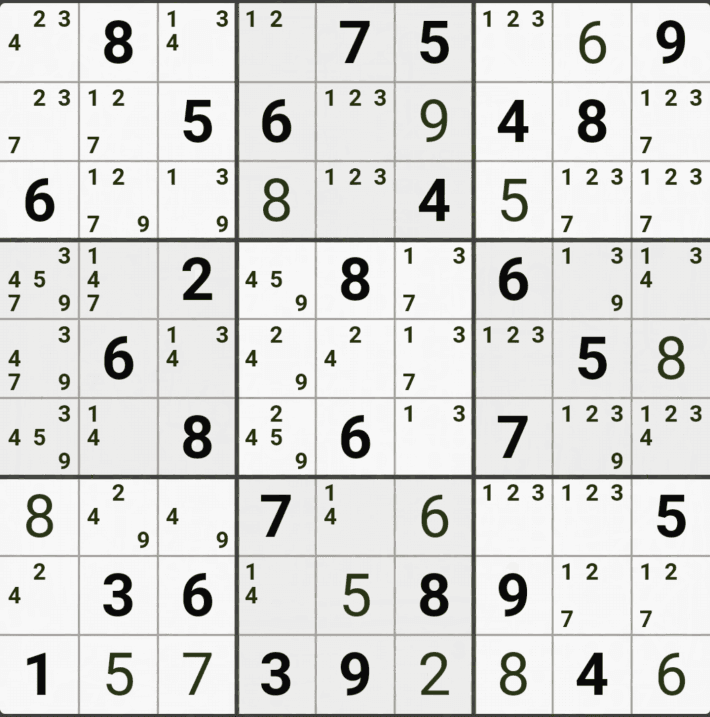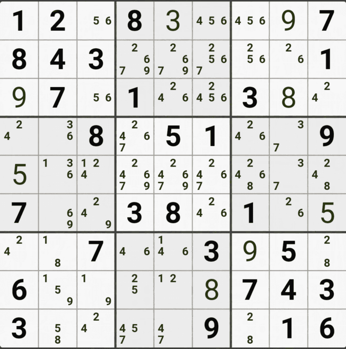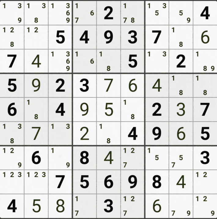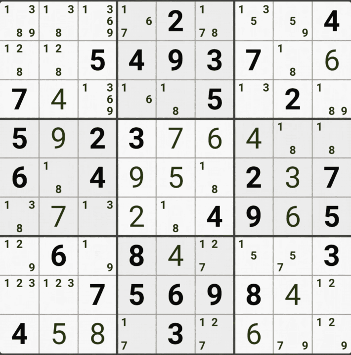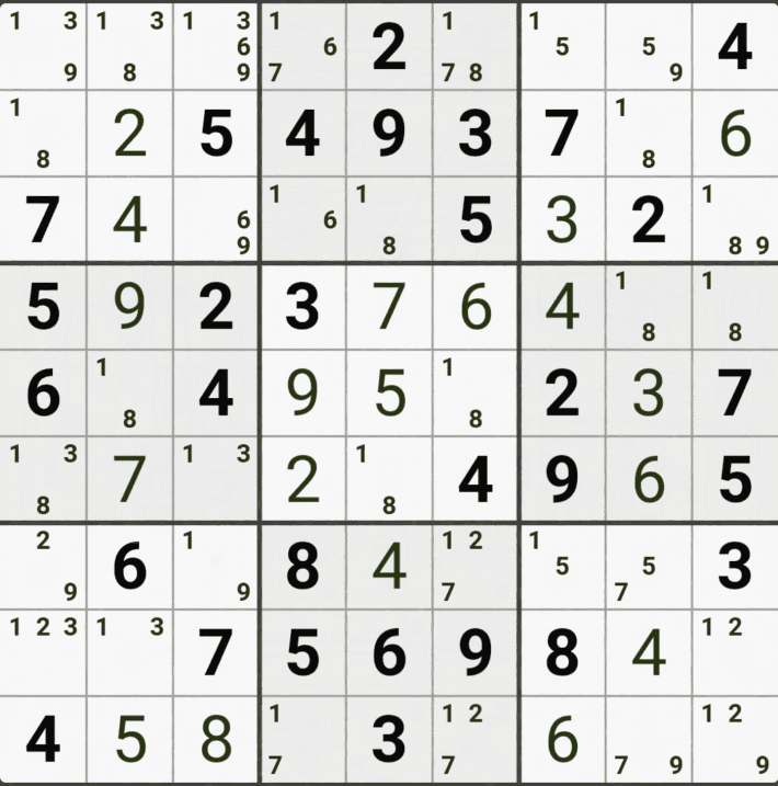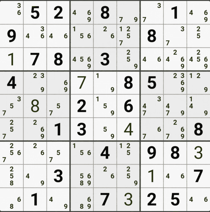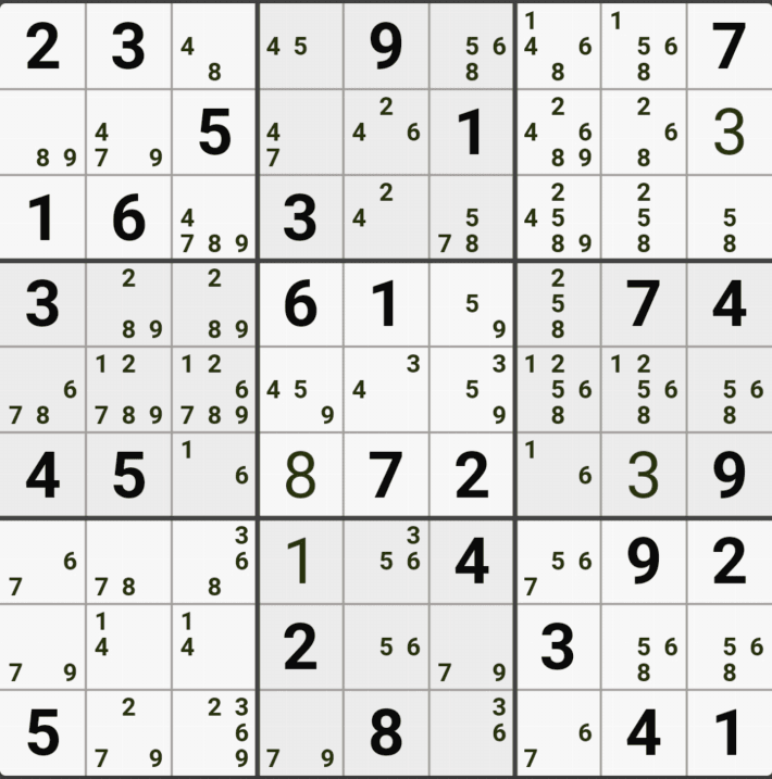 웹사이트 또는 유튜브에서 익힌 고급기술을 실전에서 쓰려면 실제로 잘 나오지 않거나 보이지 않아서 놓치는 경우가 많다. 그래서 이번 글에서는 스도쿠에서 가장 많이 출현하는 싱글체인(Single Cahin, 심플컬러링), X체인(X-Chain), XY체인(XY-Chain), 교대추론체인(Alternating Inference Chains) 의 실전 움짤(225개)을 모아봤다. 자료 출처는 안도쿠 3이라는 안드로이드 앱에서 클래식 스도쿠 '극히 어려움 101번~150번'까지이다.