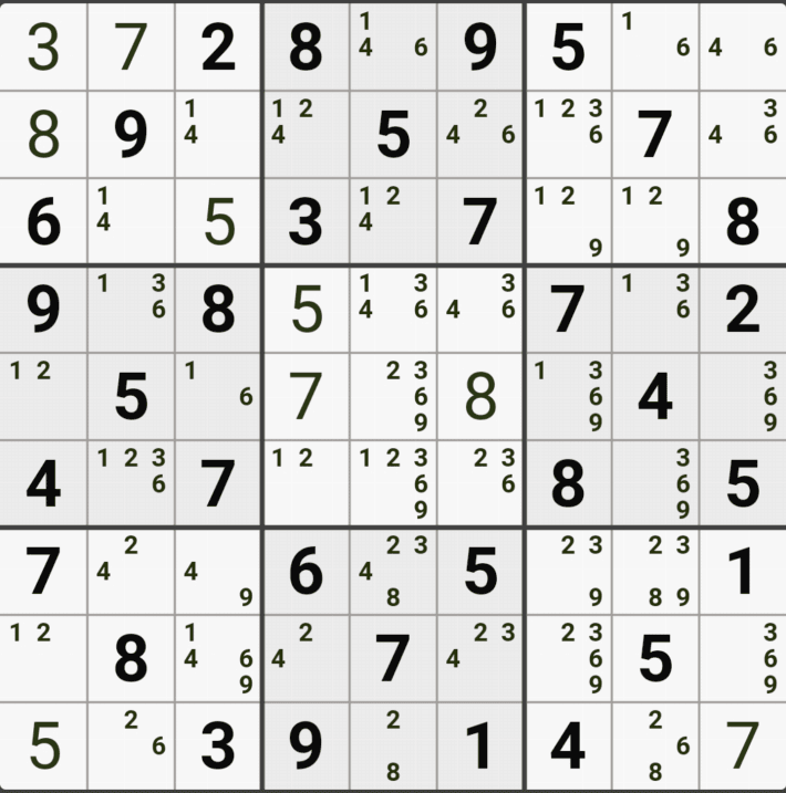 (최근에 XY체인에서 헛방을 많이 찾아서 무슨 패턴이 있을까 싶었는데, 없더라. 최근에 난이도가 높은 앱을 깔고 좀 좌절 중이다. 그저 많이 보고 잘 발견하는 수 밖에 없는 것 같다. 다만 3링크로 연결되는 심플컬러링과 X체인은 어느 정도 패턴이 있다.)