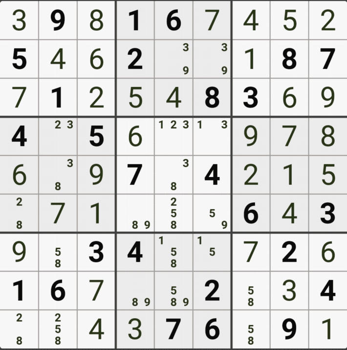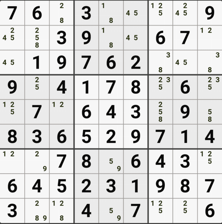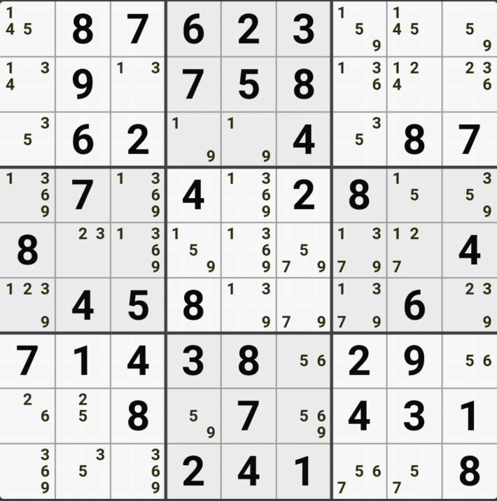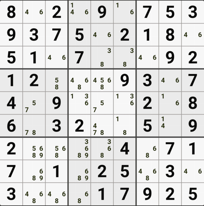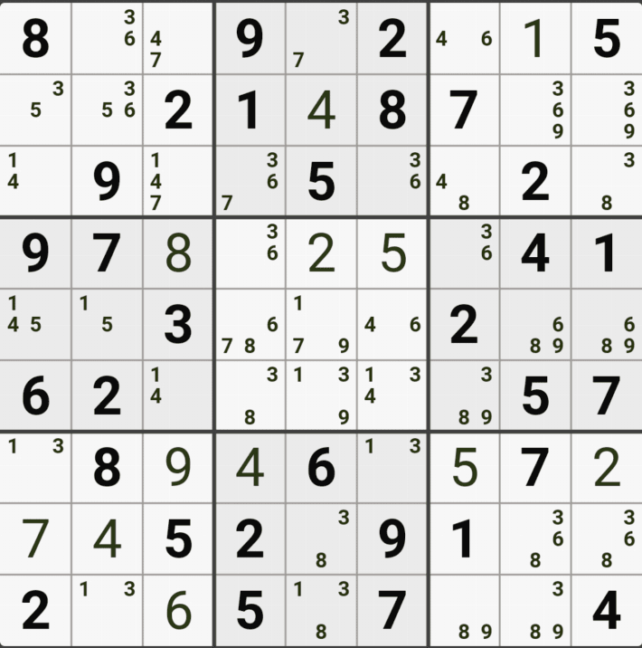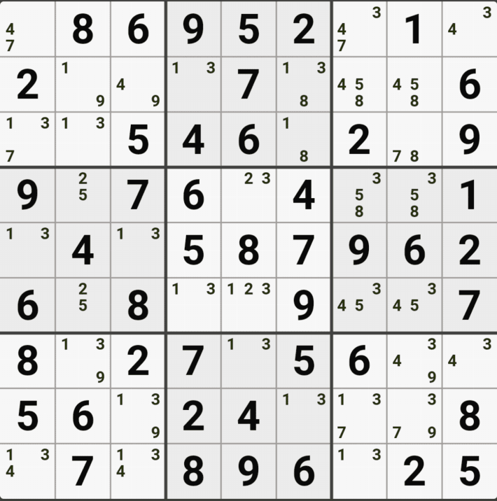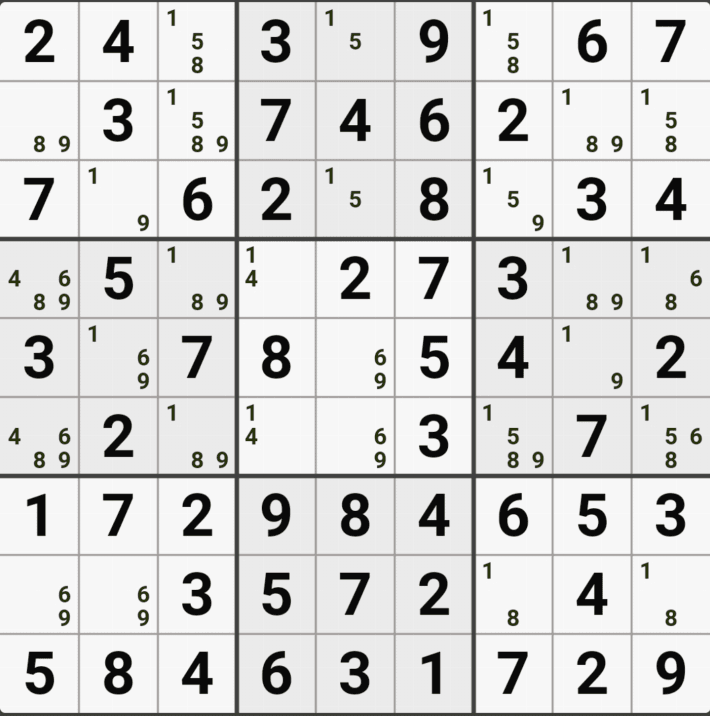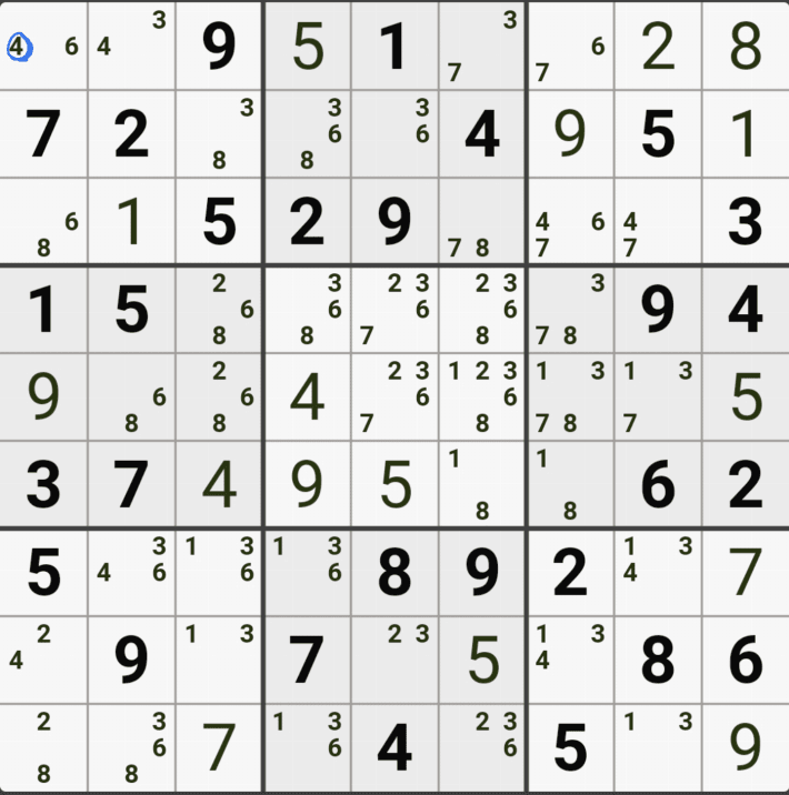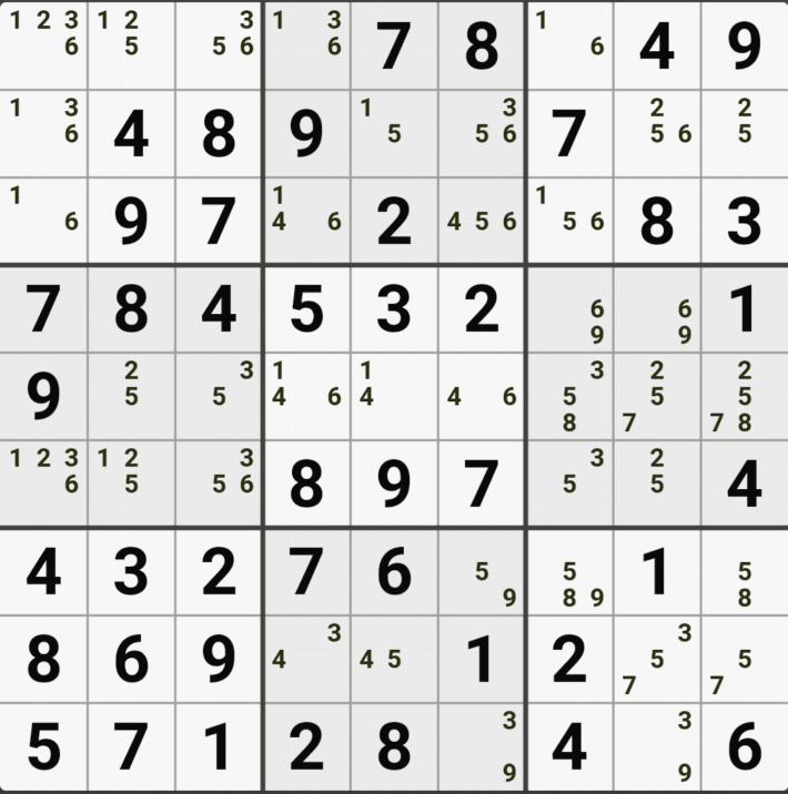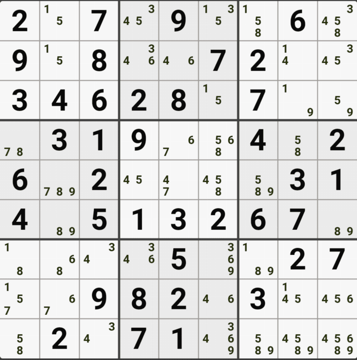모든 예제는 '스도쿠 위키'라는 웹사이트와 앱에서 가져왔다. 앱은 다 좋은데 인터페이스가 별루라서 비추한다. 웹사이트만 참조해서 보자. 현존하는 모든 스도쿠 기술로 문제를 해결해 주고 다이아그램도 보여준다.만 인터페이스가 어지러운 것이 단점이다.