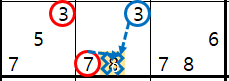 이를 제거 하기 위해서는 -7[B7] 과 -7[I7] 2개의 후보 숫자는 제거 되어야 한다.