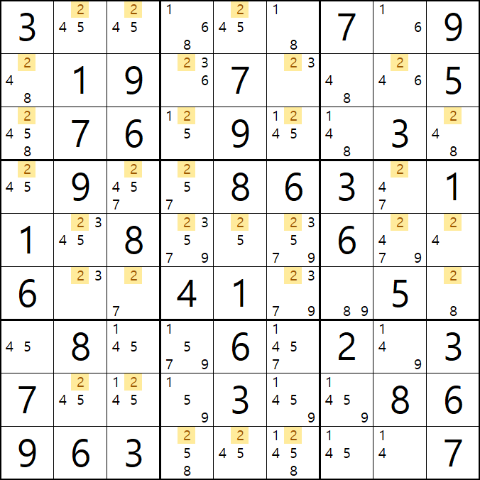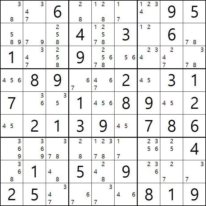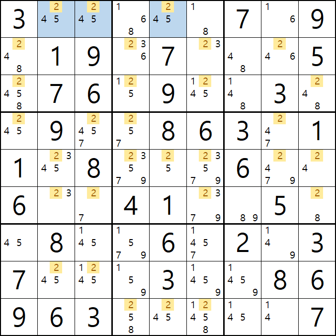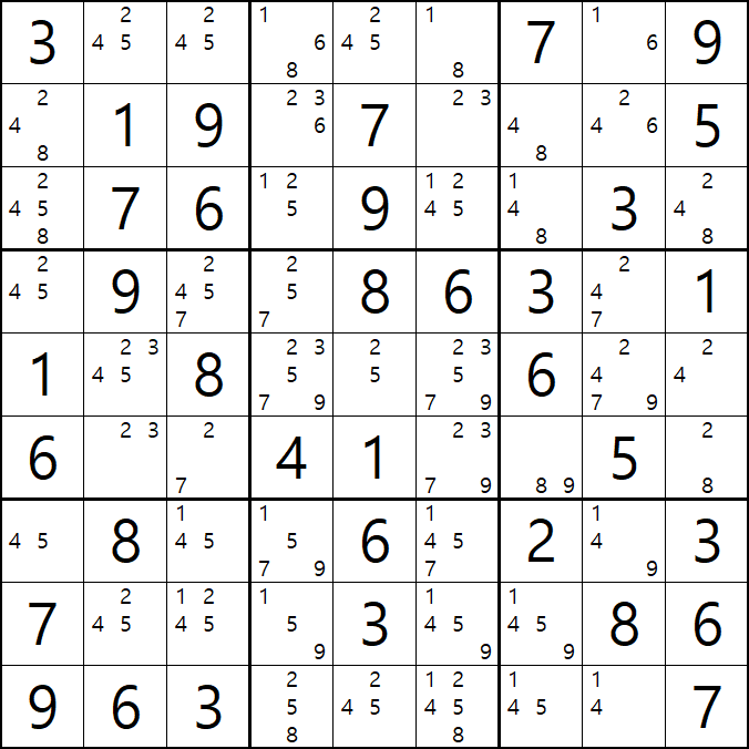 이 글에서는 Tripe UFC 및 Quard UFC만 올리는데 당연히 Dual UFC도 가능하지만, 예제 찾기가 힘들다. 트리플 및 쿼드를 이해하면 듀얼은 당연히 이해가 될 거라고 본다. 본 글에 쓰인 예제는 '스도쿠 위키'라는 사이트에서 차용했다.