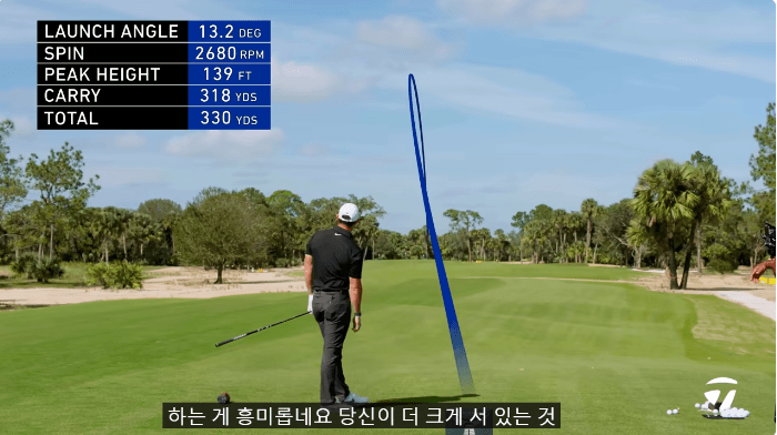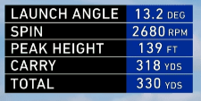 13.2도의 출발각일 때는 백스핀이 2680RPM에 비거리 330야드 최고 높이 139피트인데