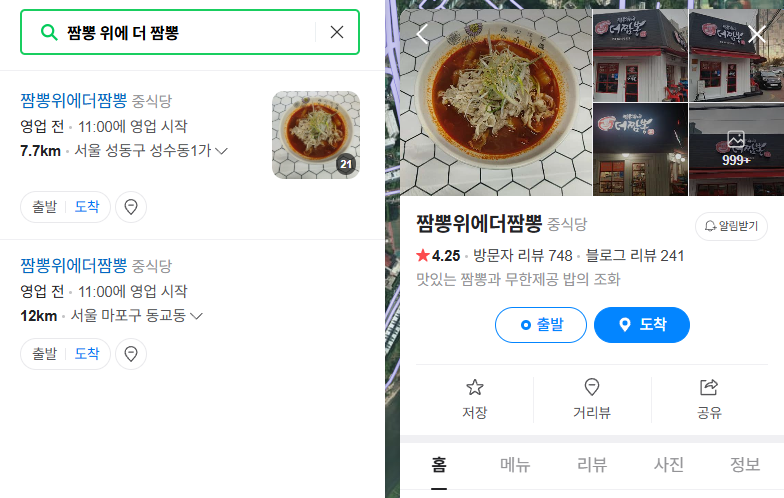 | 짬뽕 위에 더 짬뽕 | 구글 별점 | 네이버 별점 | 내 별점 |