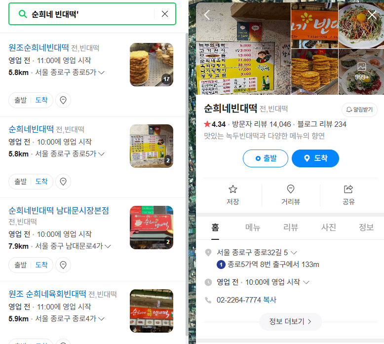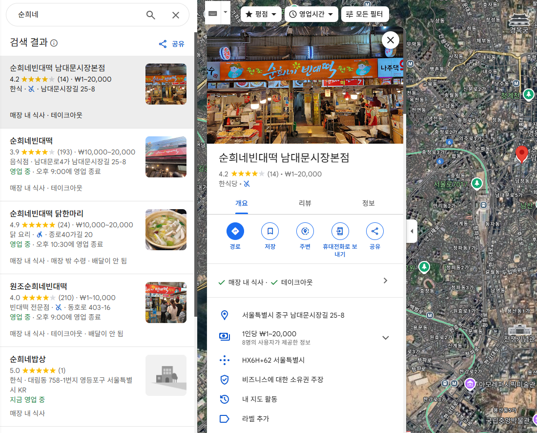 | 순희네 빈대떡 | 구글 별점 | 네이버 별점 | 내 별점 |
