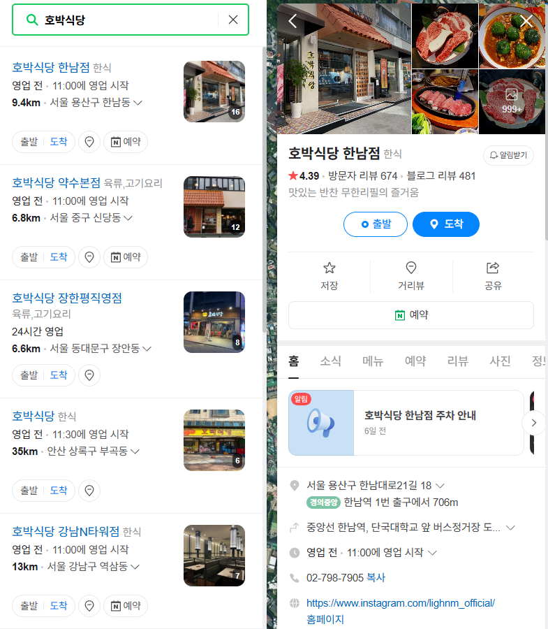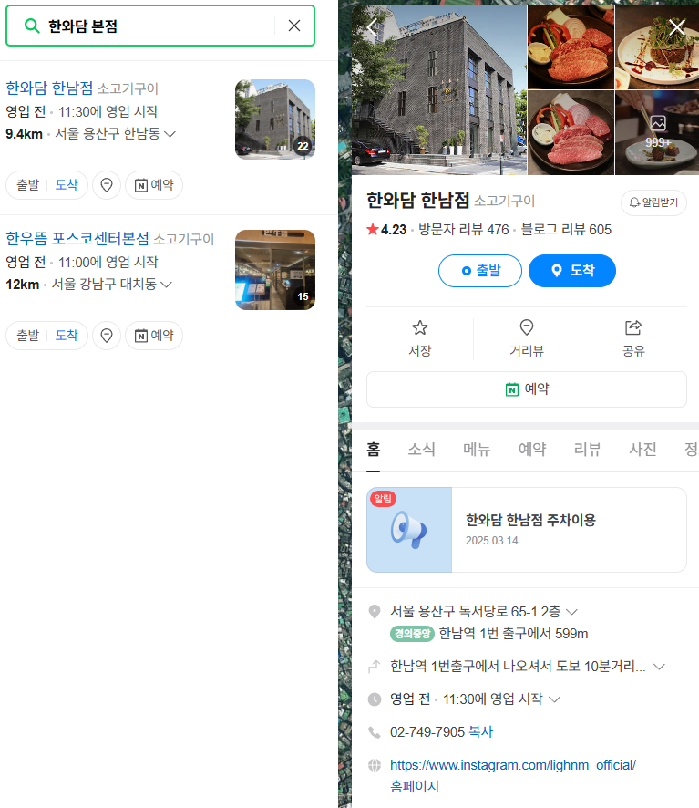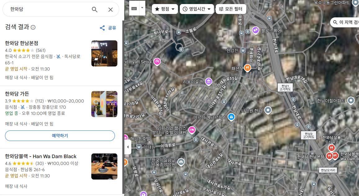 | 한와담 한남 본점 | 구글 별점 | 네이버 별점 | 내 별점 |