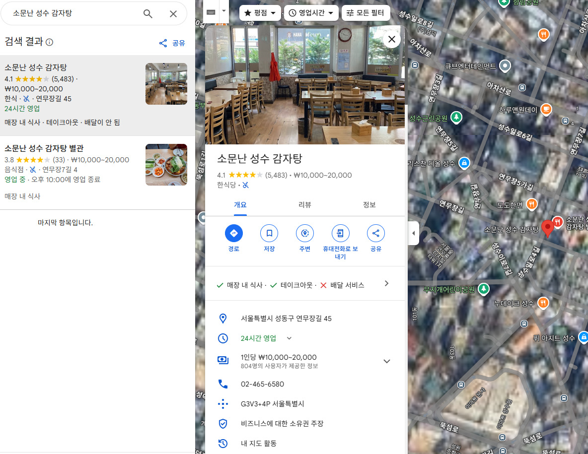 | 소문난 성수 감자탕 | 구글 별점 | 네이버 별점 | 내 별점 |