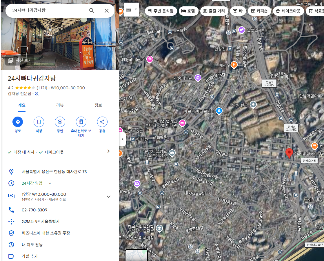 음. 여기도 성시경 먹을텐데 유튜브 보고 찾아가 본 곳인데... 웨이팅이 길어서 안가다가. 비올 때 한 번 가봤는데... 여긴 안습이다. 구글 별점 3.7이고 네이버 별점은 4.4점인데.. 나는 3.1이다. 사준다고 해도 가고 싶지 않은 맛이고~ 그리고 서비스 당연히 개판이다. 음 조마루 뼈다귀 감자탕 가본인원이라면 그 맛을 100으로 보면 여긴 75 정도 보면 된다. 왜 줄을 서는지 미스테리인 곳이다.