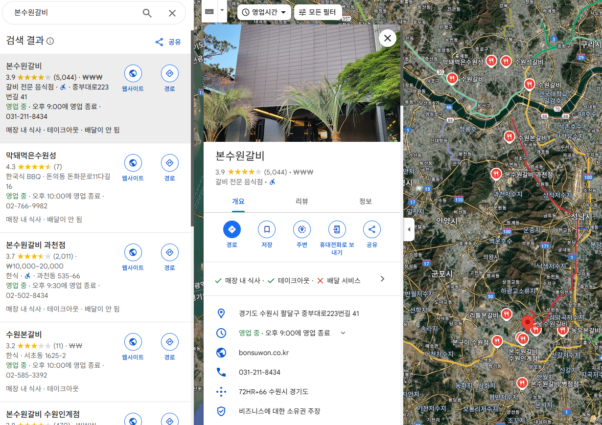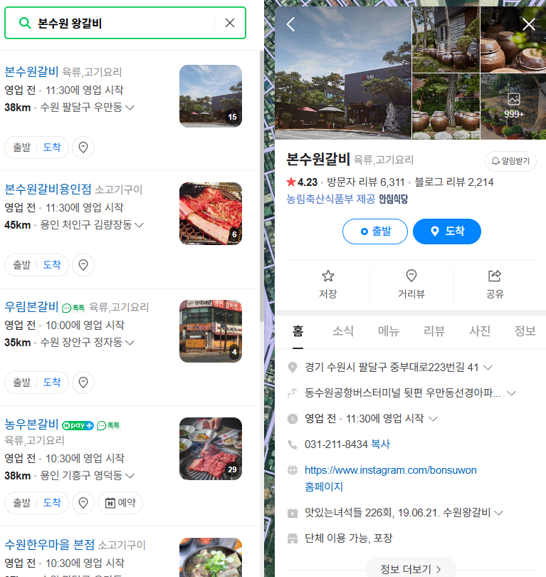 | 본수원 왕갈비 | 구글 별점 | 네이버 별점 | 내 별점 |