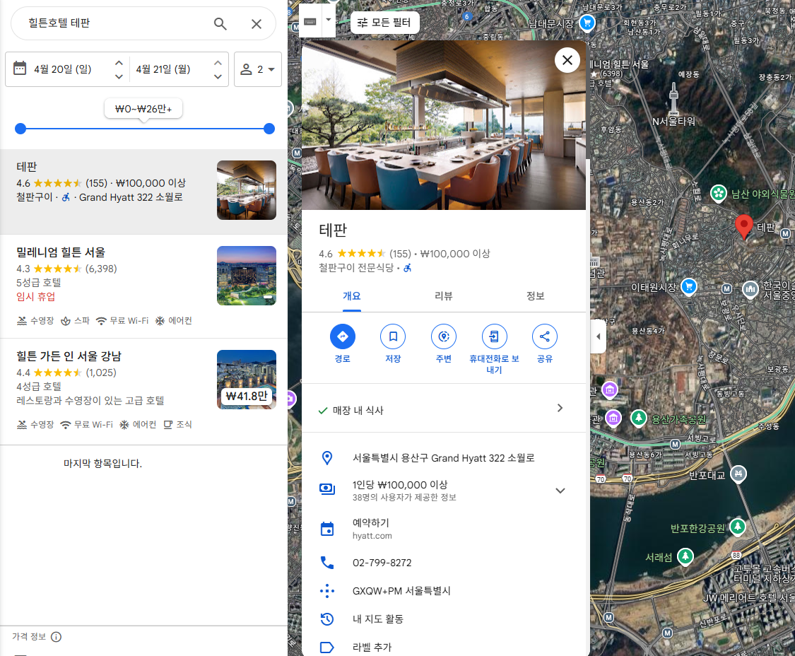 8. 남산 그랜드 하얏트 서울 호텔 '테판'
