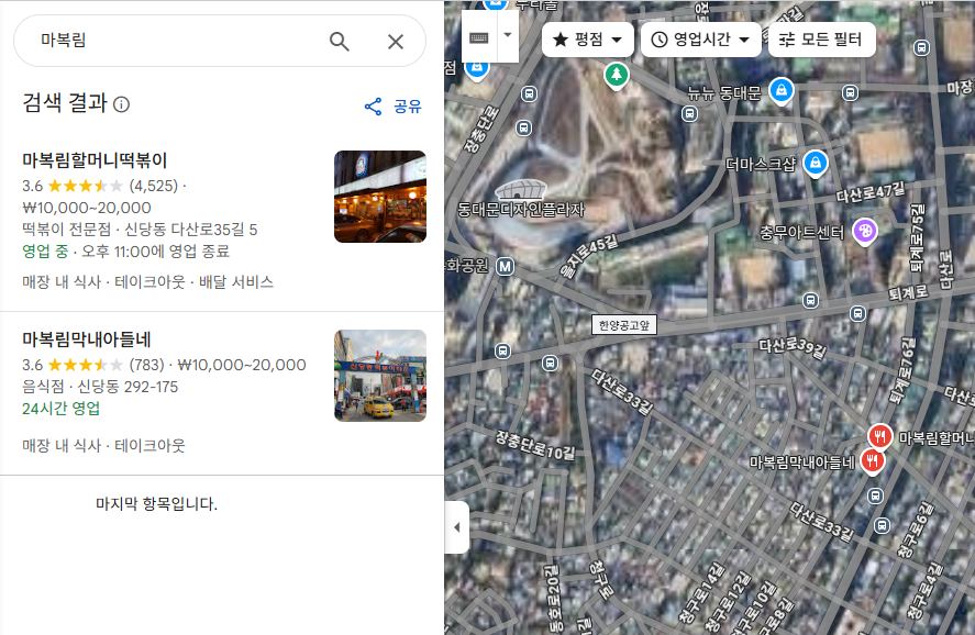 | 마복림 할머니 떡볶이 | 구글 별점 | 네이버 별점 | 내 별점 |