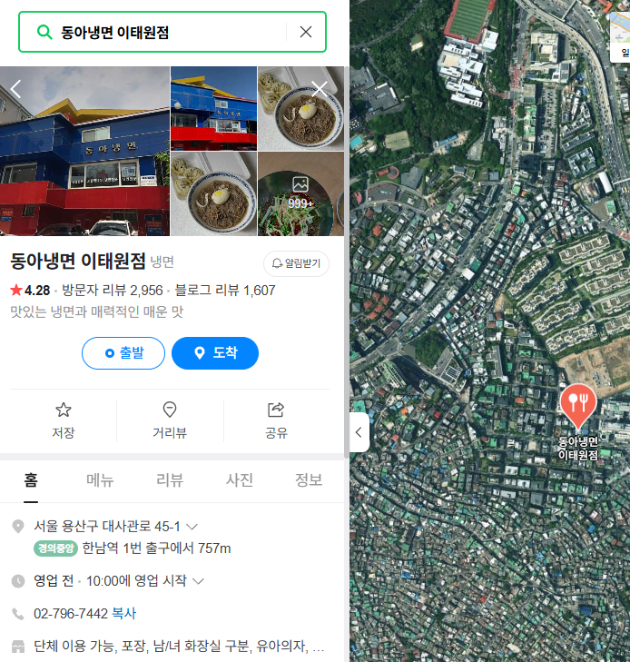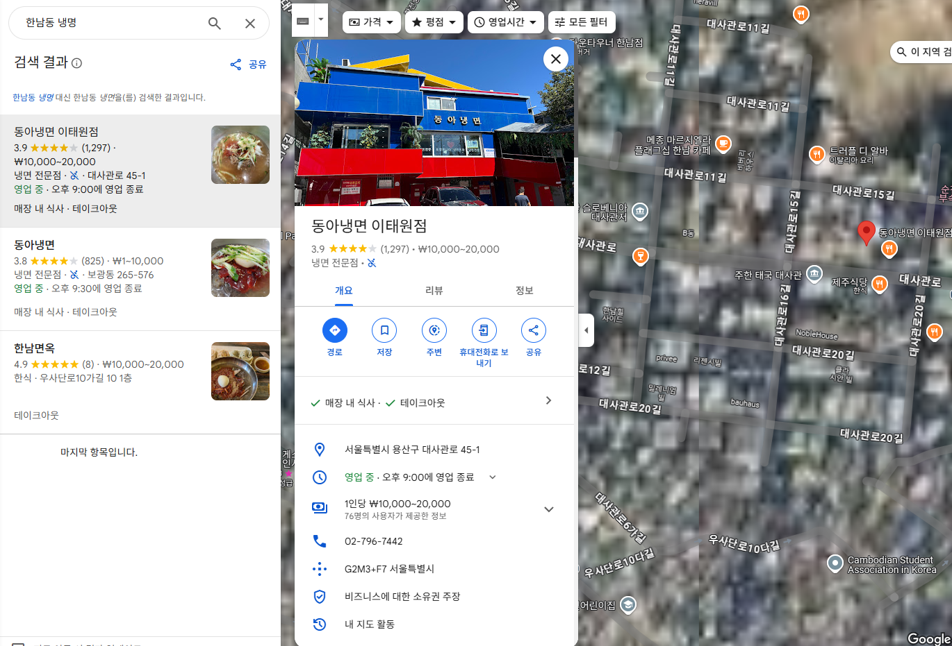 | 동아냉면 이태원점 | 구글 별점 | 네이버 별점 | 내 별점 |