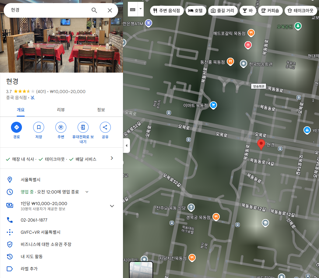 현경 지점을 여러곳 가보다가 맛있다고 생각하였고... 논현동 현경 본점이라길래 한 번 가봤는데. 볶음밥을 먹었는데.. 좀 실망스러운 맛이었다. 구글 점수는 3.7점인데. 네이버 별점은 못 찾겠다. 나는 3.5점~