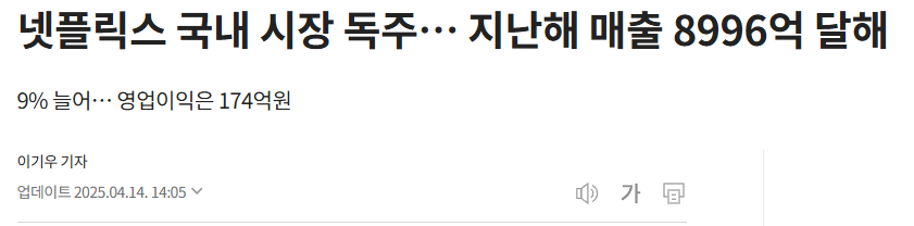 대한민국에서 넷플릭스 가입자가 2024년 기준으로 약 9000억원의 매출을 올렸다고 하는데, 대략 한달 가입비를 7천원(광고요금제, 통신사 멤버십 등)으로 잡으면 900000000000/7000원/12개월=1071만명/월 정도로 매월 약 1000~1100만명의 가입자를 유지 하고 있는 것으로 보이는데 최근에 가입한 인원들은 너무 볼게 많아서 헷갈릴 때가 있을 것이다.