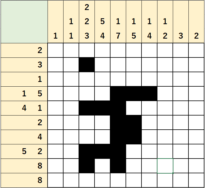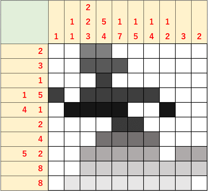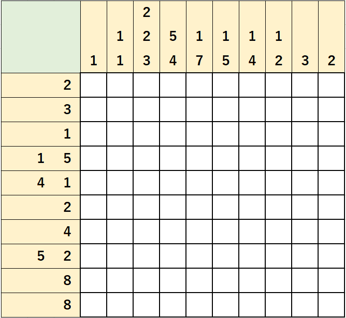 (노노그램은 큰 숫자 > 2개 이상 숫자를 손대라고 하지만 본인 스타일에 맞추면 되겠다.)
