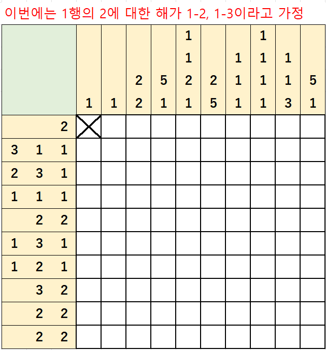 노노그램 막혀서 헤메일 때, 써먹을 귀류(가정)법
