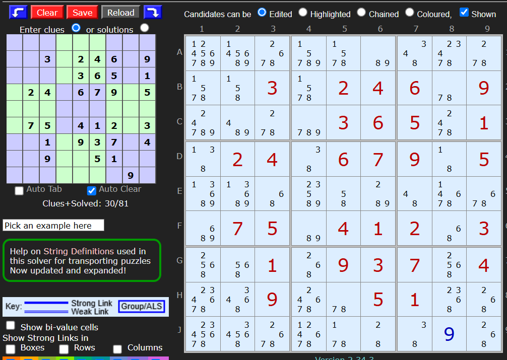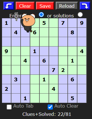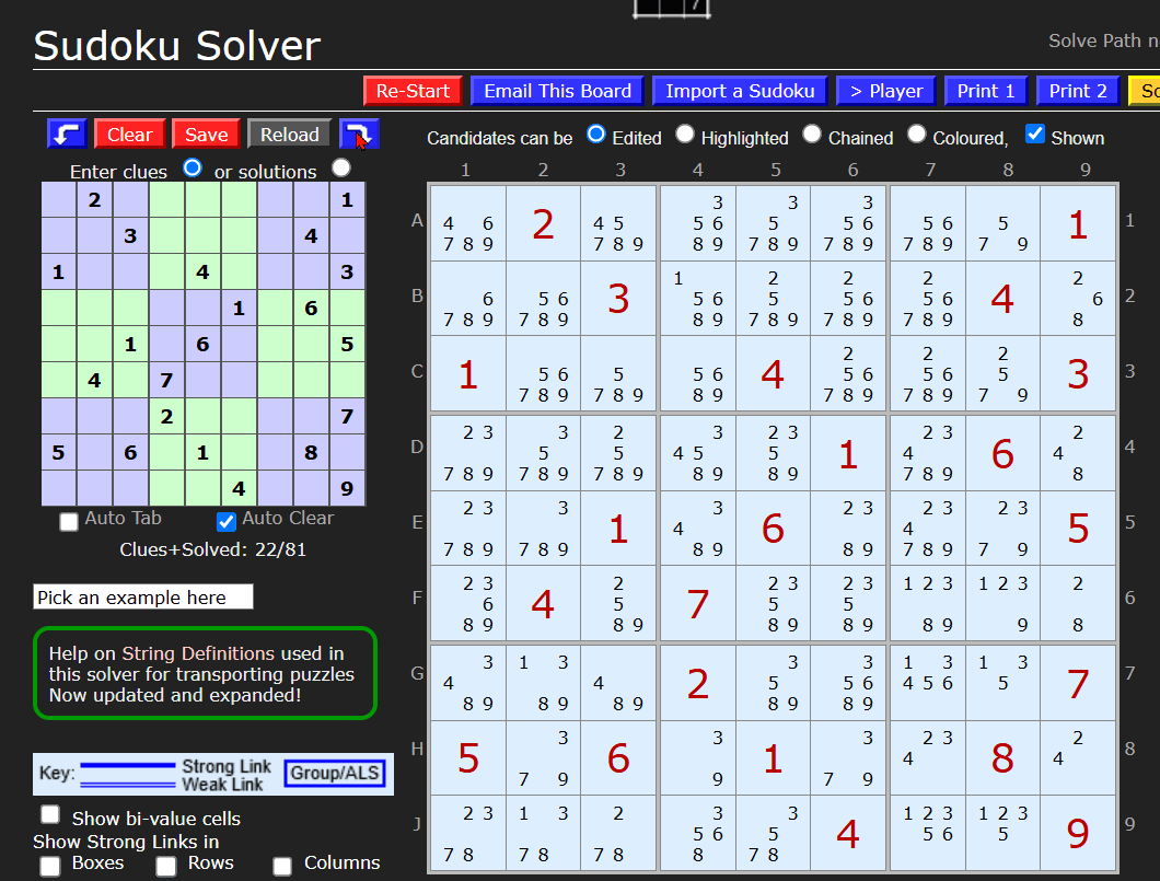 아래의 '스도쿠 솔버' 사이트를 가보길 권한다. 여긴 예제도 많다.