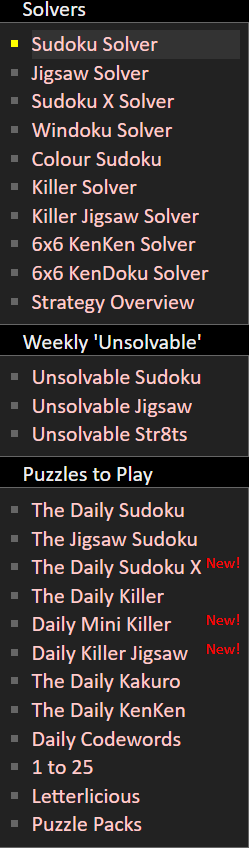 제일 좌측에는 메뉴가 있지만... 우리는 맨 위에 있는 'Sudoku Solver'만 된다~