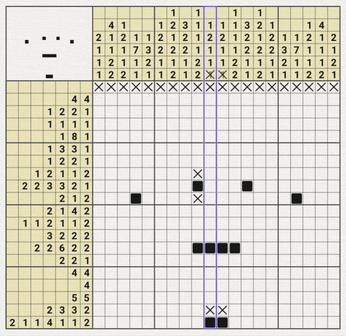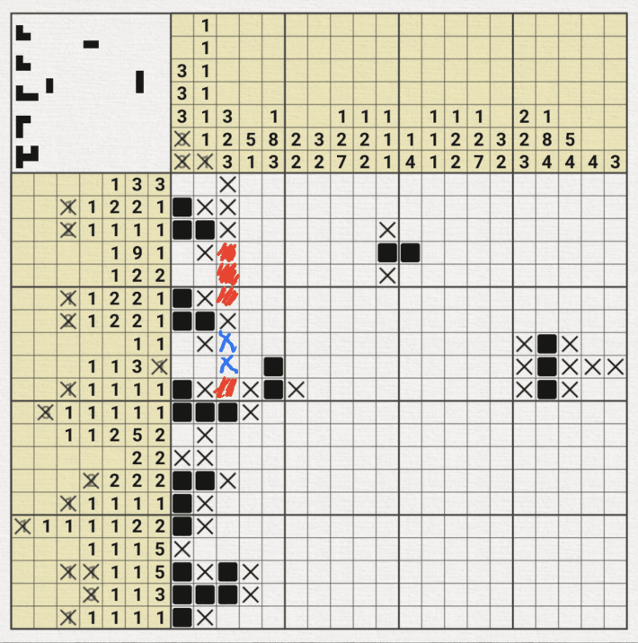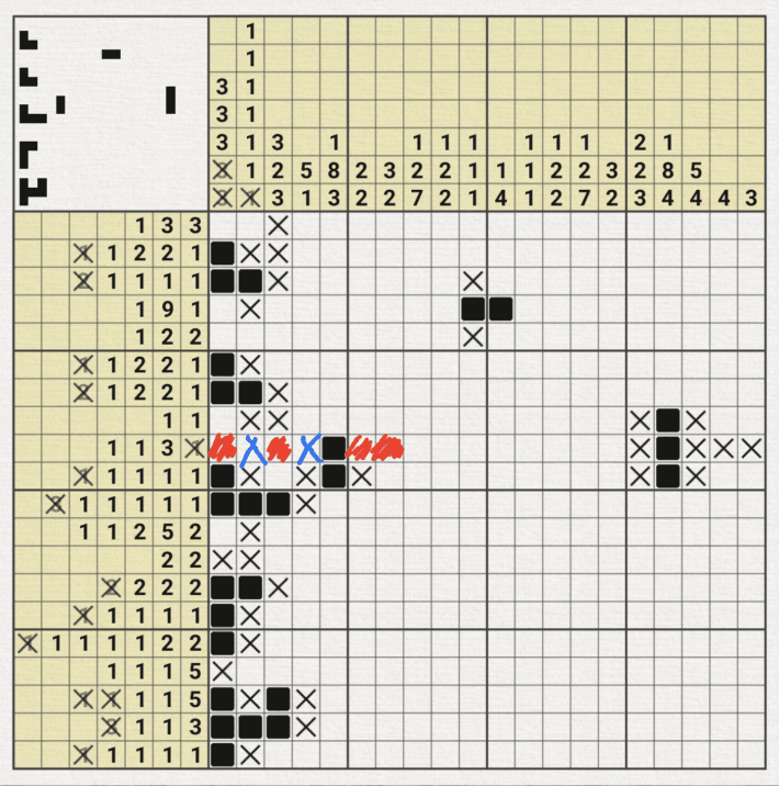 하. 아래 상황은 정말 지금까지 노노그램을 즐기면서 겪은 최난도의 기술(?) 인 것 같다.